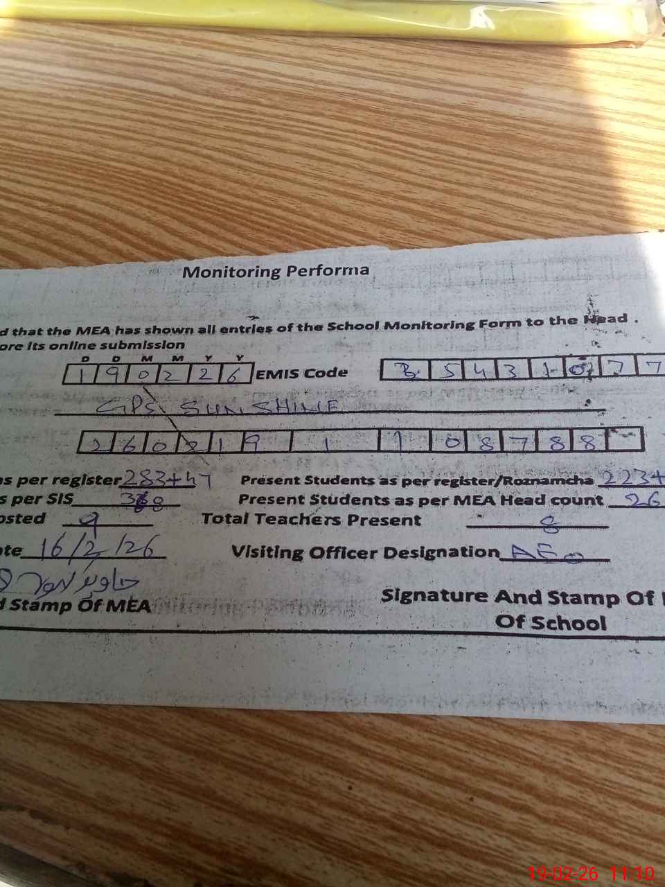 | EMIS Code: 35431077 | Name of School: GPS SUNSHINE | |||