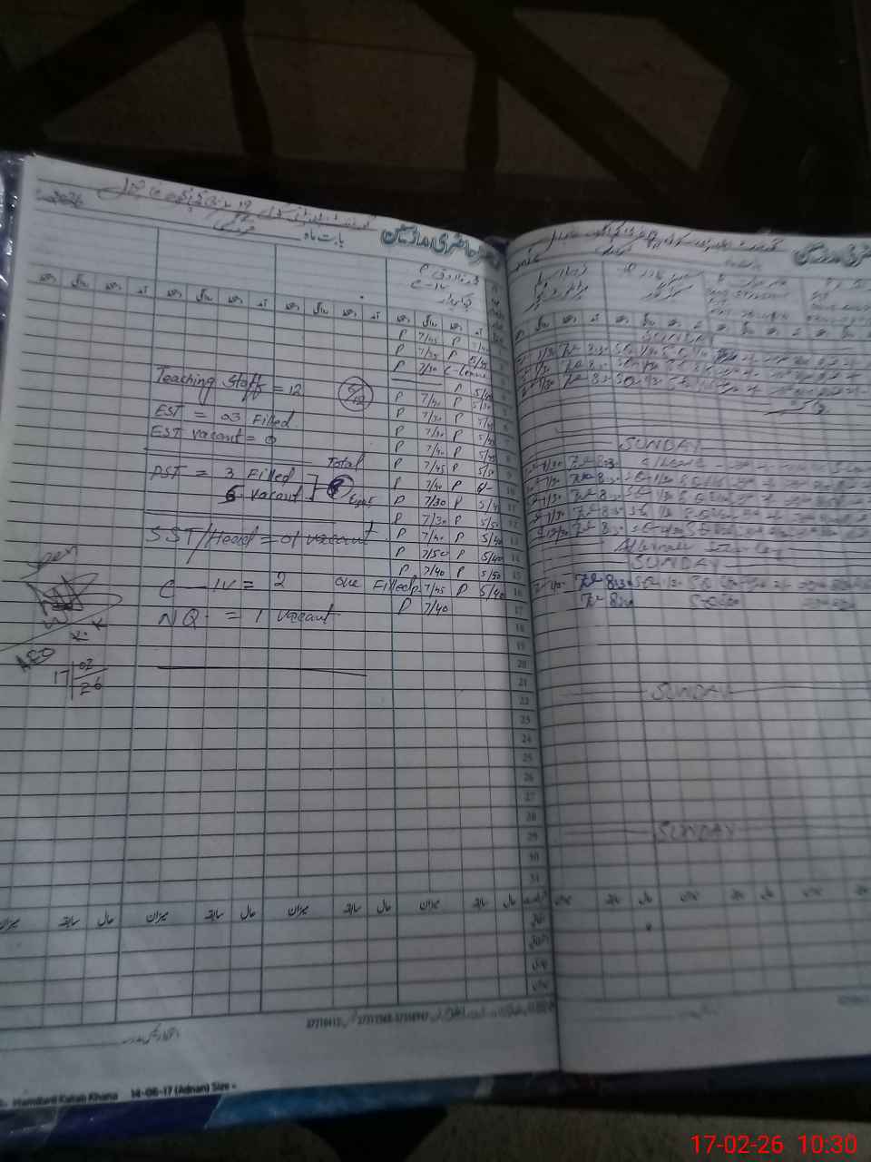 | CNIC | Full Name | Designation | R/C | Absence During Last Calender Month |