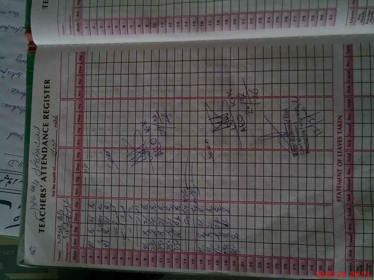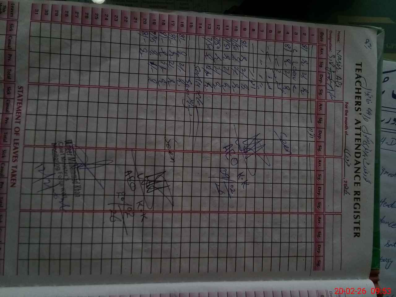| CNIC | Full Name | Designation | R/C | Absence During Last Calender Month |