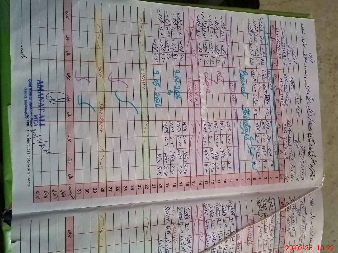 | CNIC | Full Name | Designation | R/C | Absence During Last Calender Month |