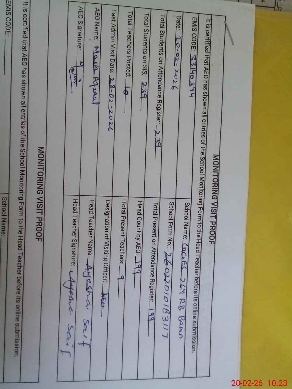 | Remarks (Use Separate Page if Required): School is visited on 20-02-2026. | |||||