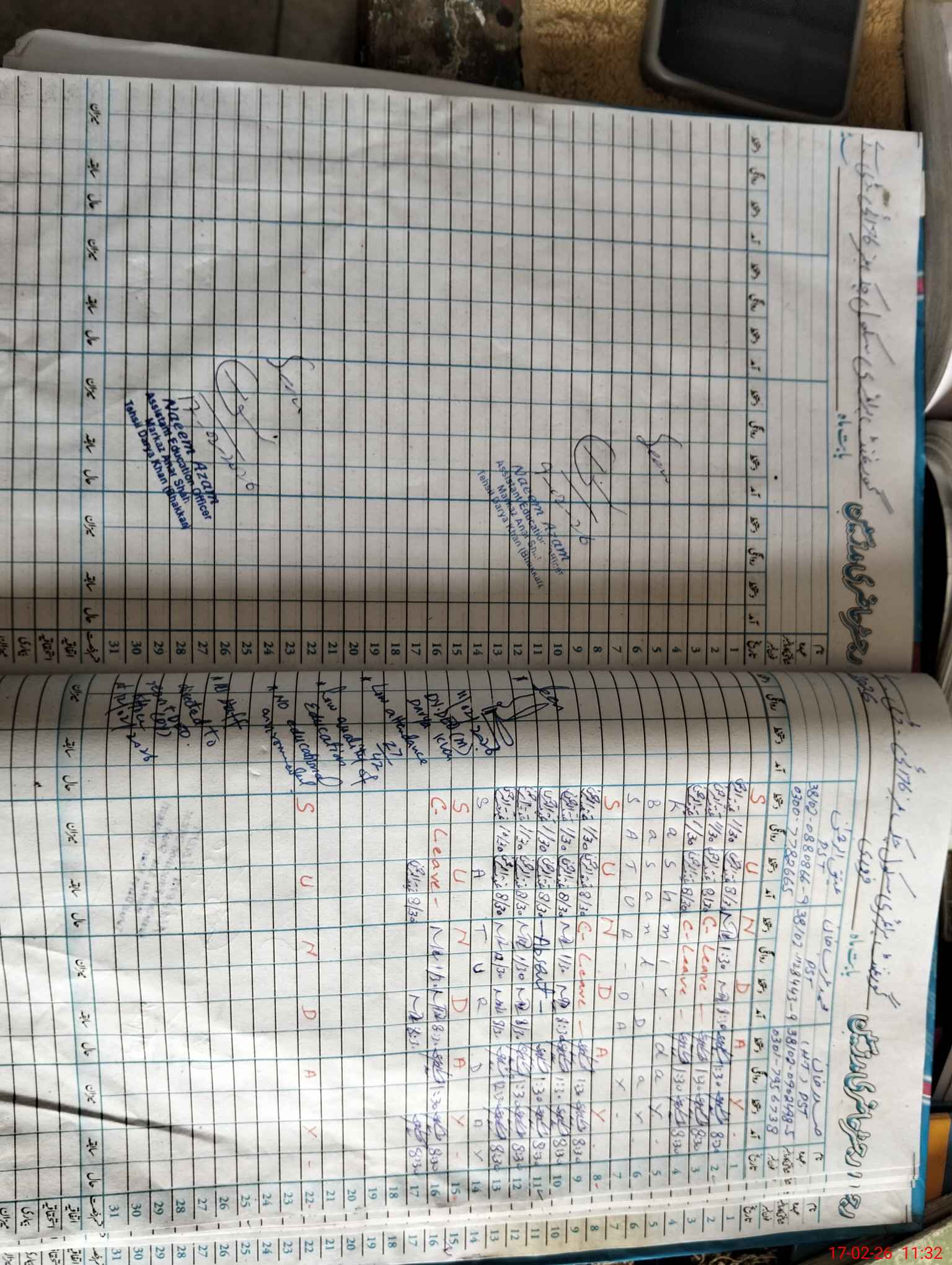 | CNIC | Full Name | Designation | R/C | Absence During Last Calender Month |