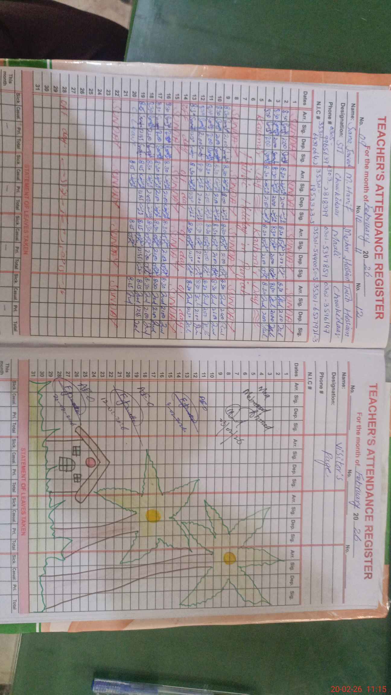 | Name: SA**** BI**** Designation: (School Headmaster's/Headmistress's) SST ARTS Phone/Cell Number: 03**** |