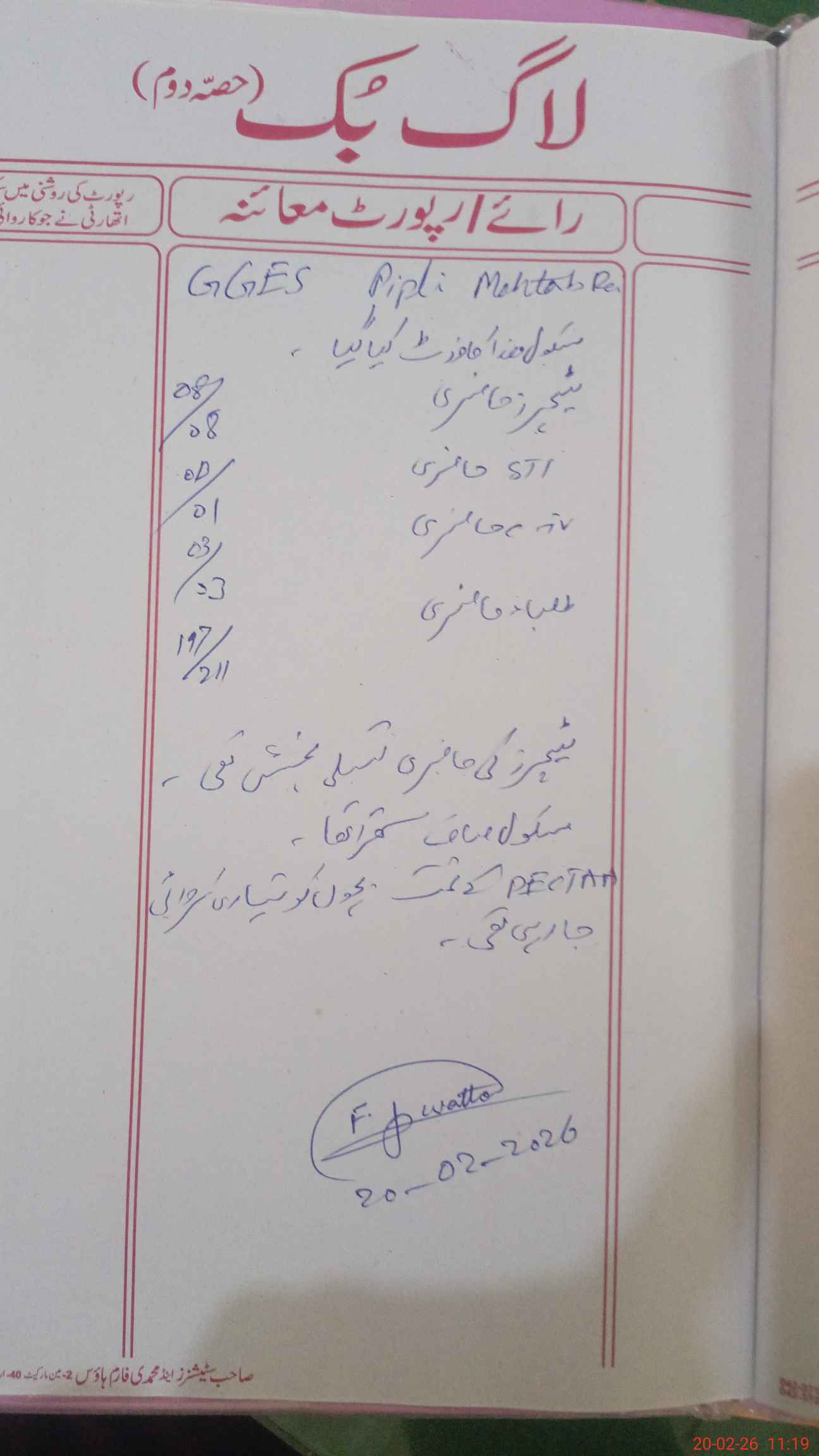 | Certified that this School was Inspected by the Undersigned MEA/DMO Today and the Information Stated Above is as Per Record. | |||||
