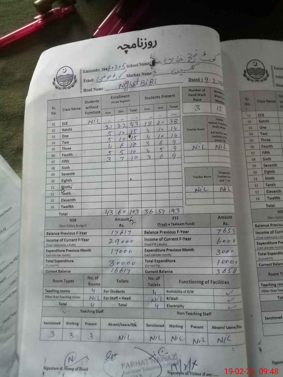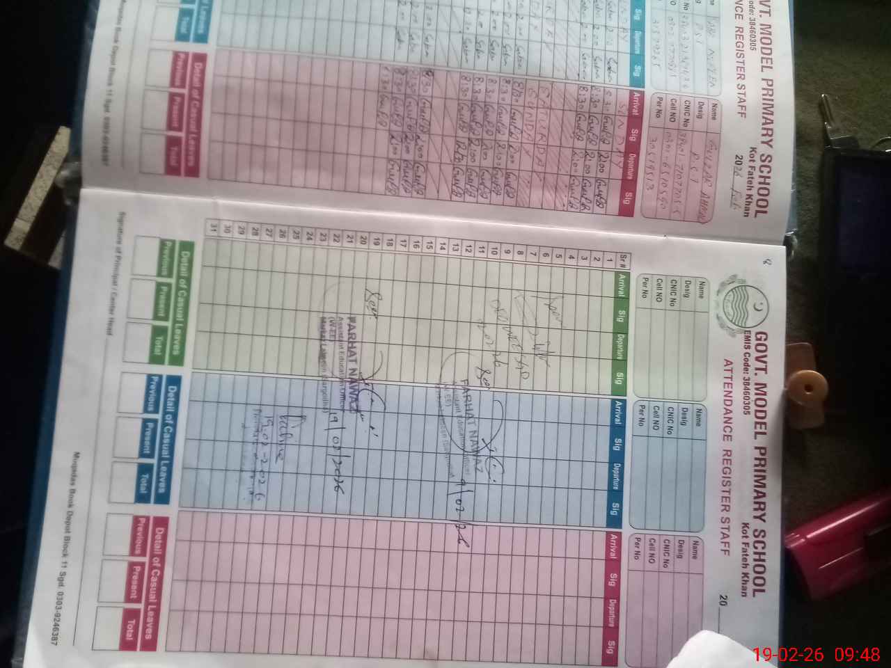 | Name: NI**** BI**** Designation: (School Headmaster's/Headmistress's) PST Phone/Cell Number: 03**** |