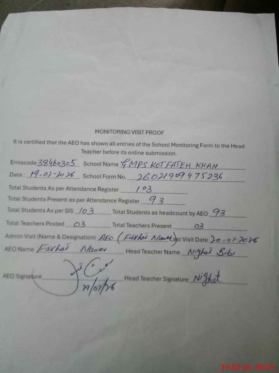 | EMIS Code: 38460305 | Name of School: GMPS KOT FATEH KHAN | |||