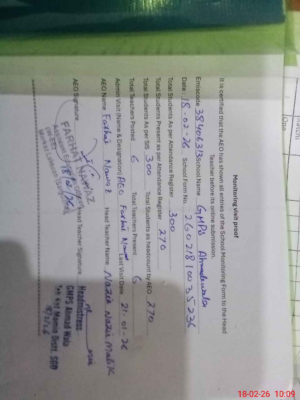 | EMIS Code: 38460313 | Name of School: GMPS AHMADEY WALA | |||