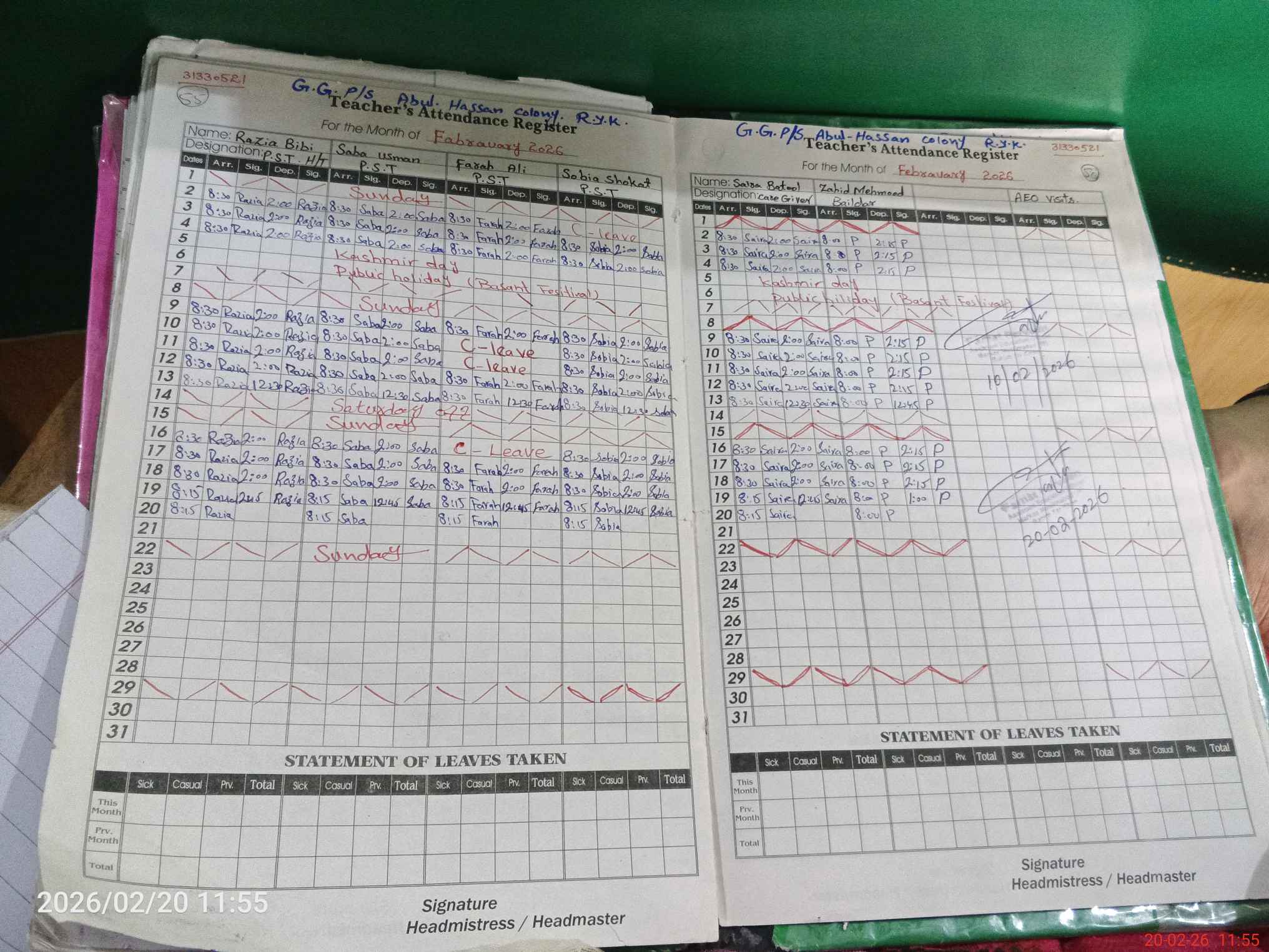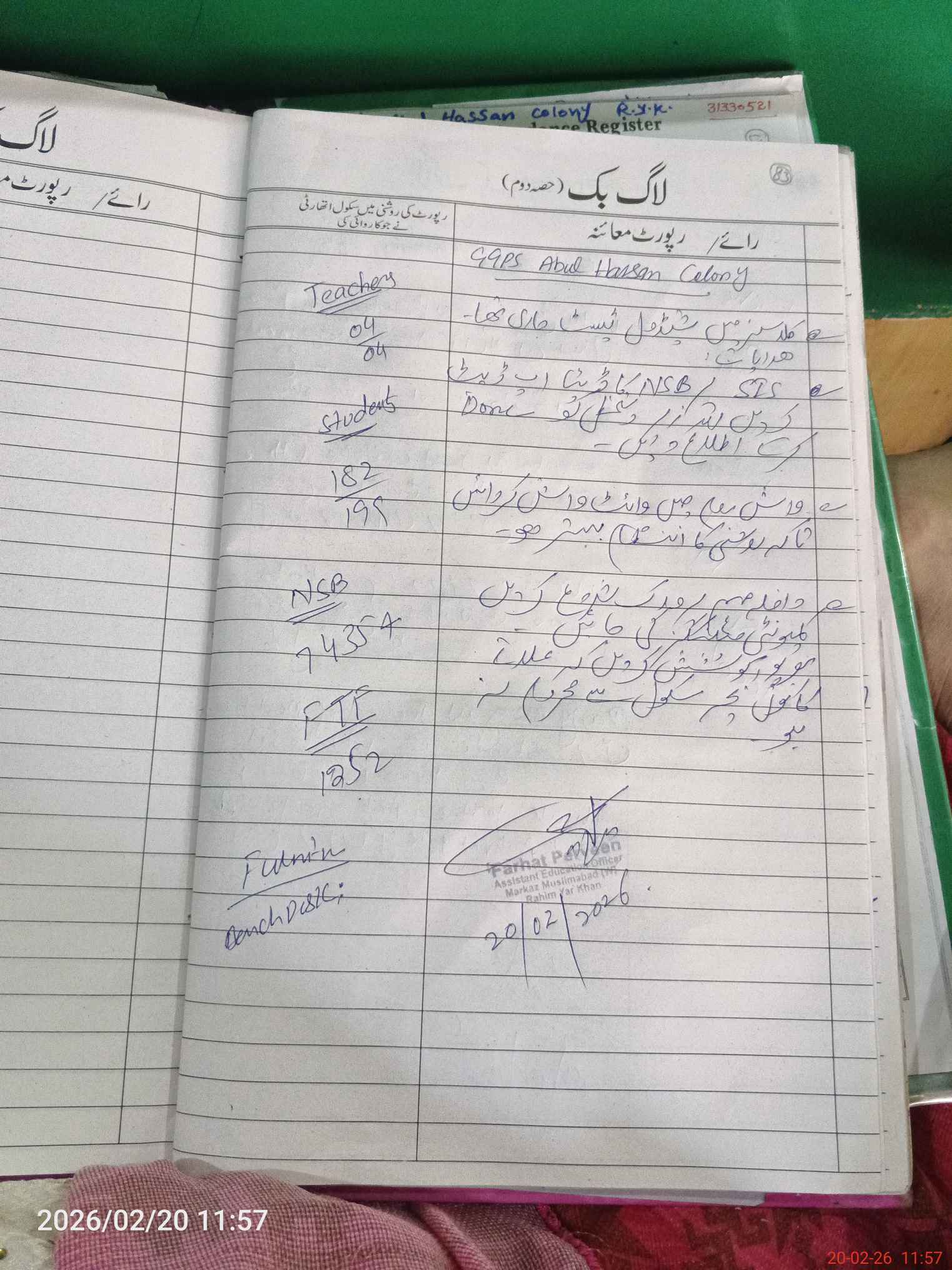 | EMIS Code: 31330521 | Name of School: GGPS ABUL HASSAN COLONY | |||