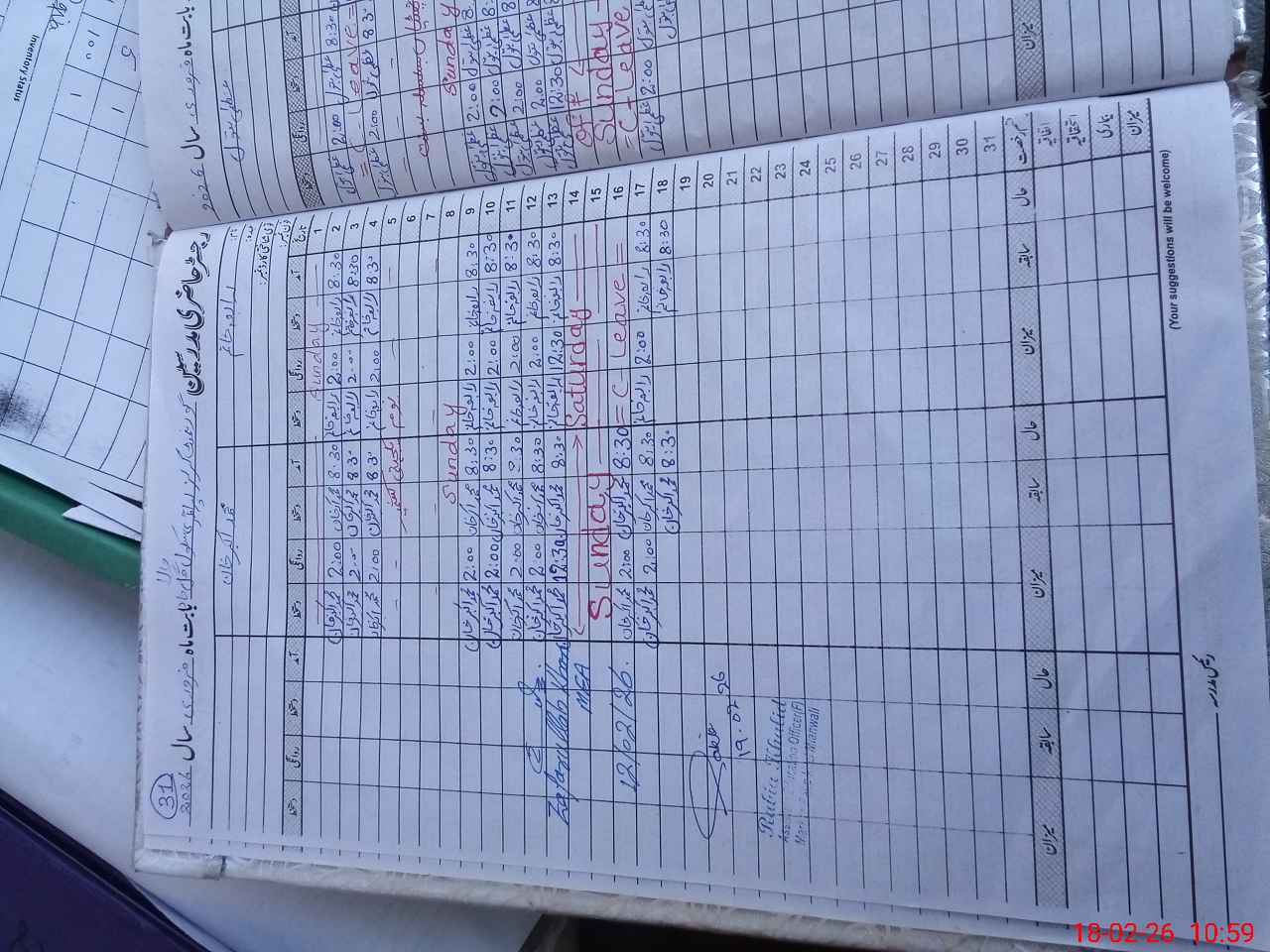 | CNIC | Full Name | Designation | R/C | Absence During Last Calender Month |