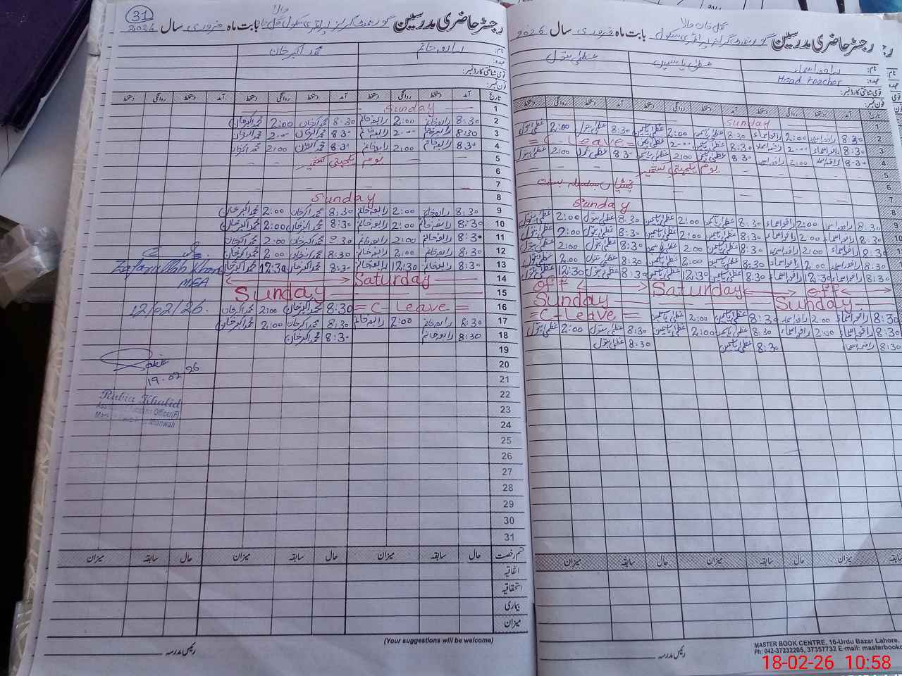 | Attendance Register | Head Teacher | MEA with School | Visit Proof |