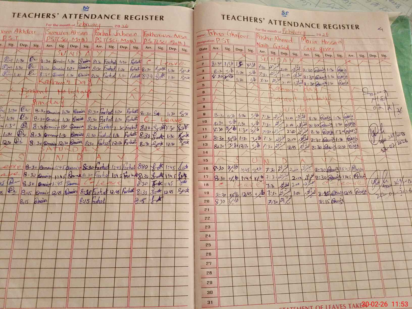 | Attendance Register | Head Teacher | MEA with School | Visit Proof |
