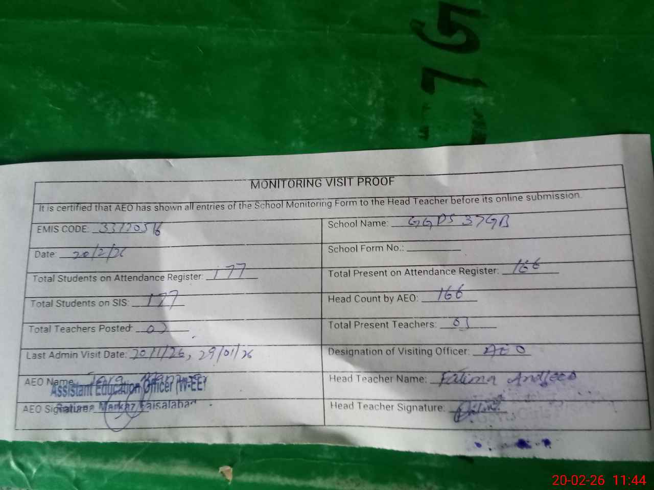| EMIS Code: 33120516 | Name of School: GGPS CHAK 37 GB SATIANA | |||