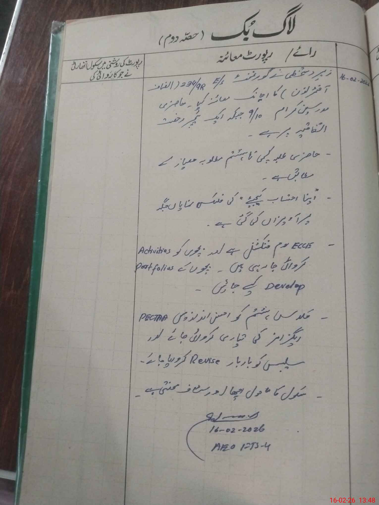 | Certified that this School was Inspected by the Undersigned MEA/DMO Today and the Information Stated Above is as Per Record. | |||||