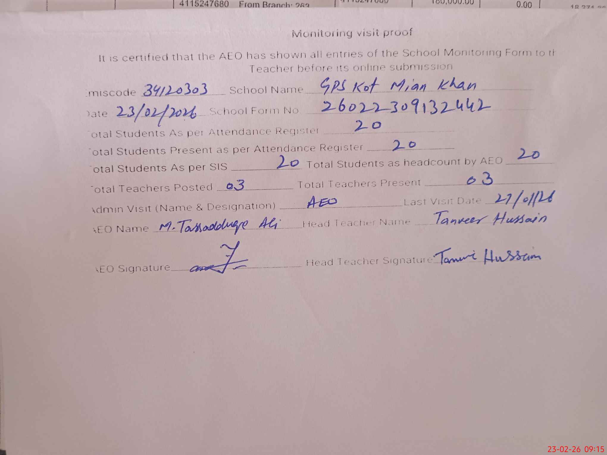 | EMIS Code: 34120303 | Name of School: GPS KOT MIAN KHAN | |||