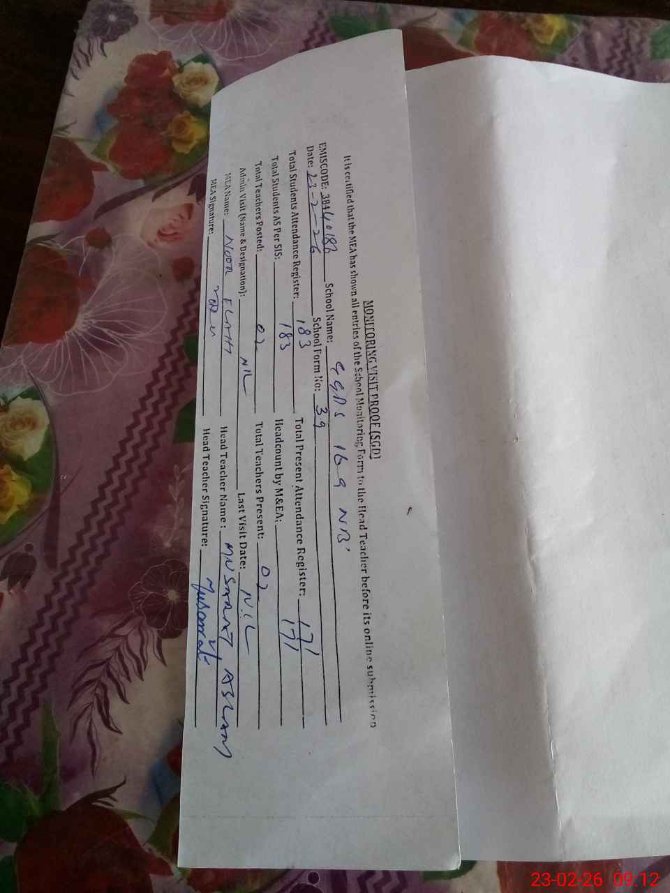 | Certified that this School was Inspected by the Undersigned MEA/DMO Today and the Information Stated Above is as Per Record. | |||||