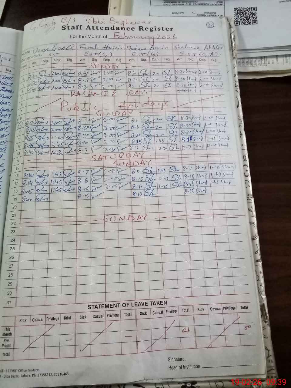 | Name: UZ**** IS**** Designation: (School Headmaster's/Headmistress's) S.S.T.(general Phone/Cell Number: 03**** |