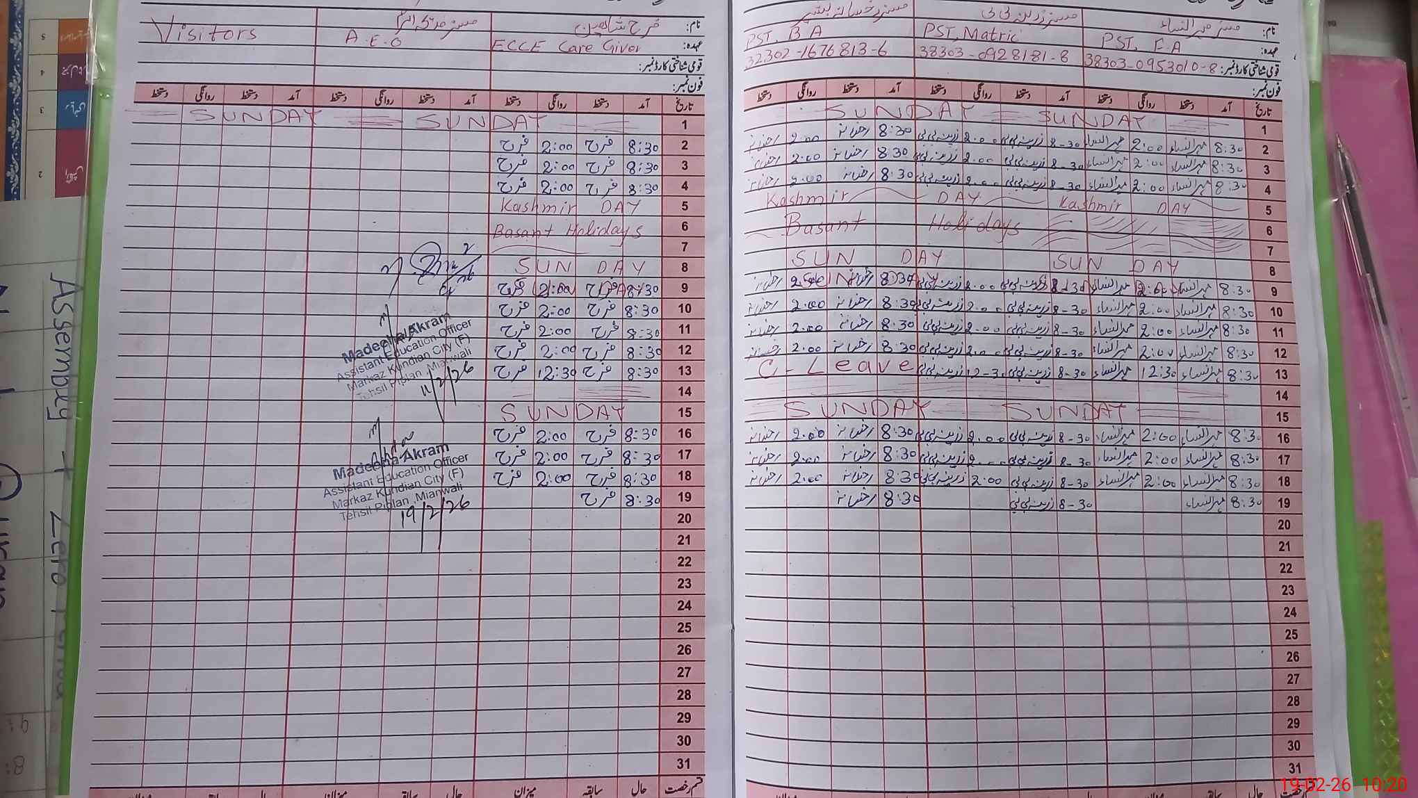 | Name: IR**** SH**** Designation: (School Headmaster's/Headmistress's) PST Phone/Cell Number: 03**** |