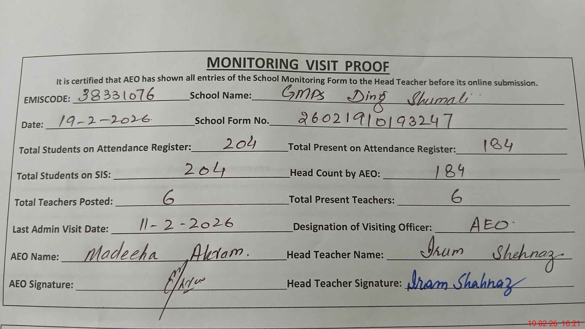 | EMIS Code: 38331076 | Name of School: GMPS DING SHUMALI | |||