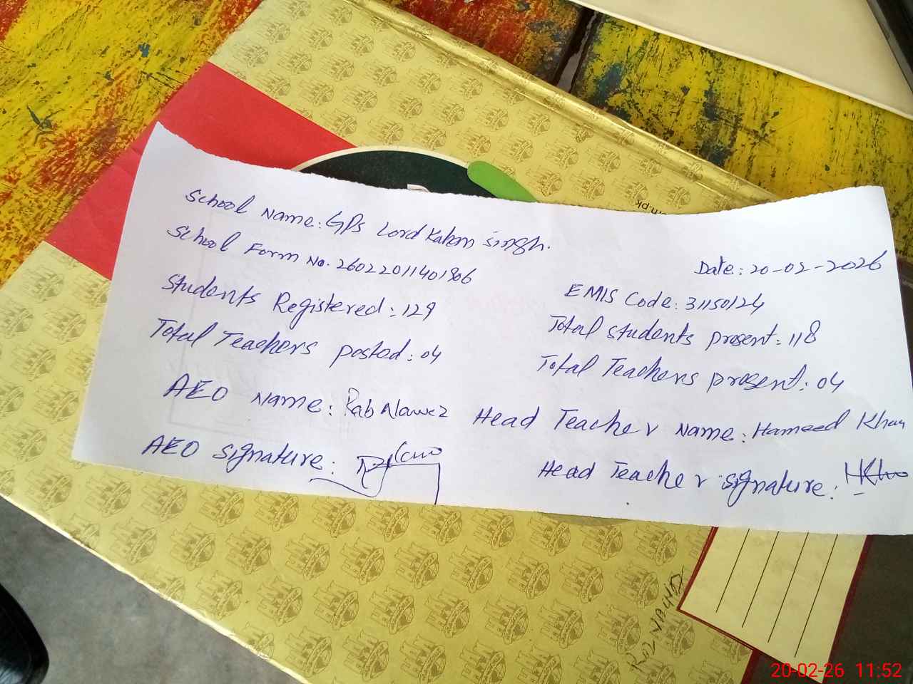 | EMIS Code: 31150124 | Name of School: GPS LARKAHAN SINGH | |||