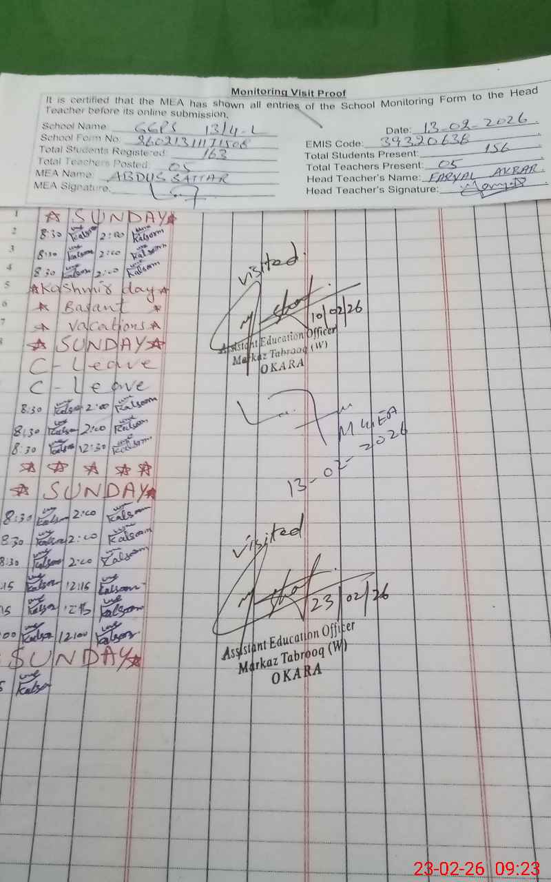 | Attendance Register | Head Teacher | MEA with School | Visit Proof |