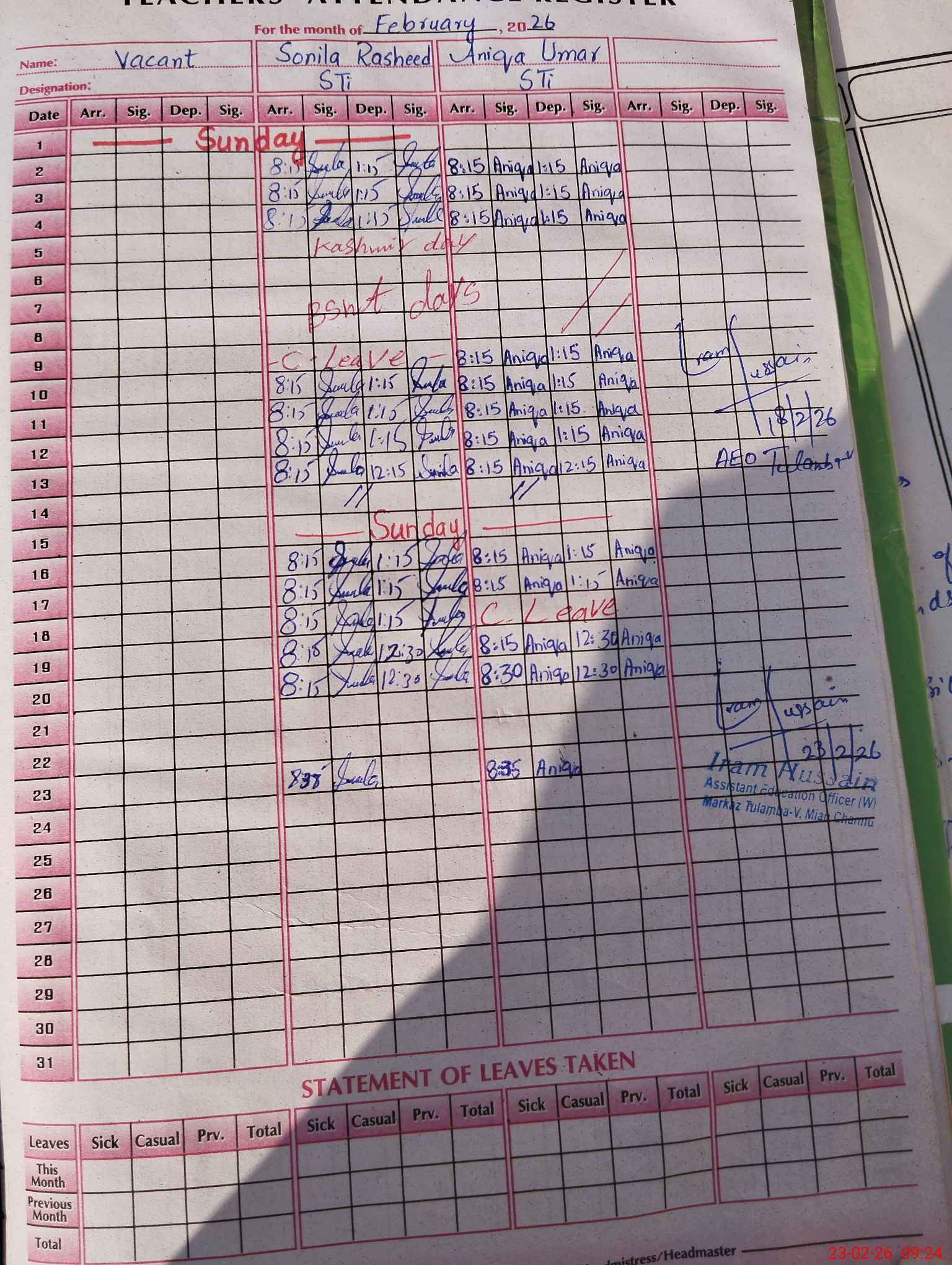 | Name: HA**** BI**** Designation: (School Headmaster's/Headmistress's) PST Phone/Cell Number: 03**** |