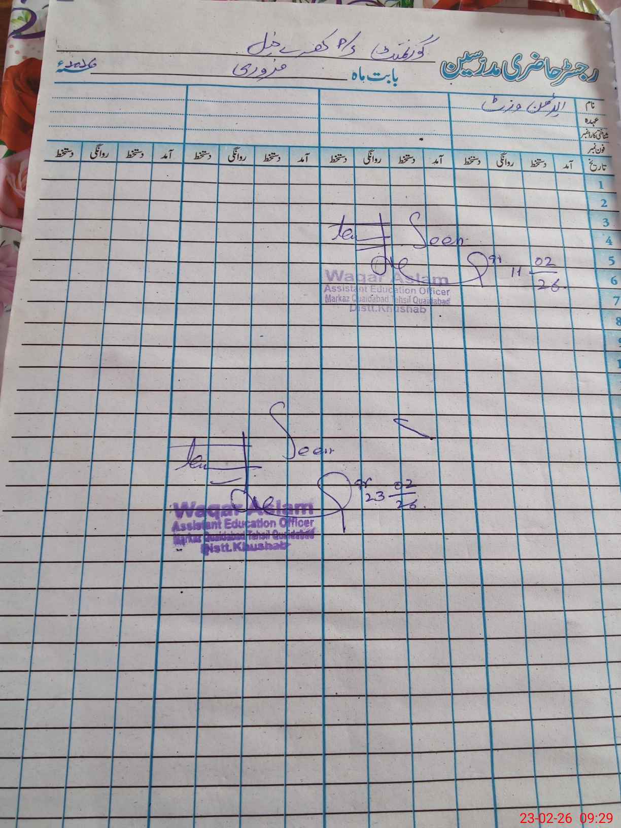 | Name: Mu**** As**** Sa**** Designation: (School Headmaster's/Headmistress's) PST Phone/Cell Number: 03**** |