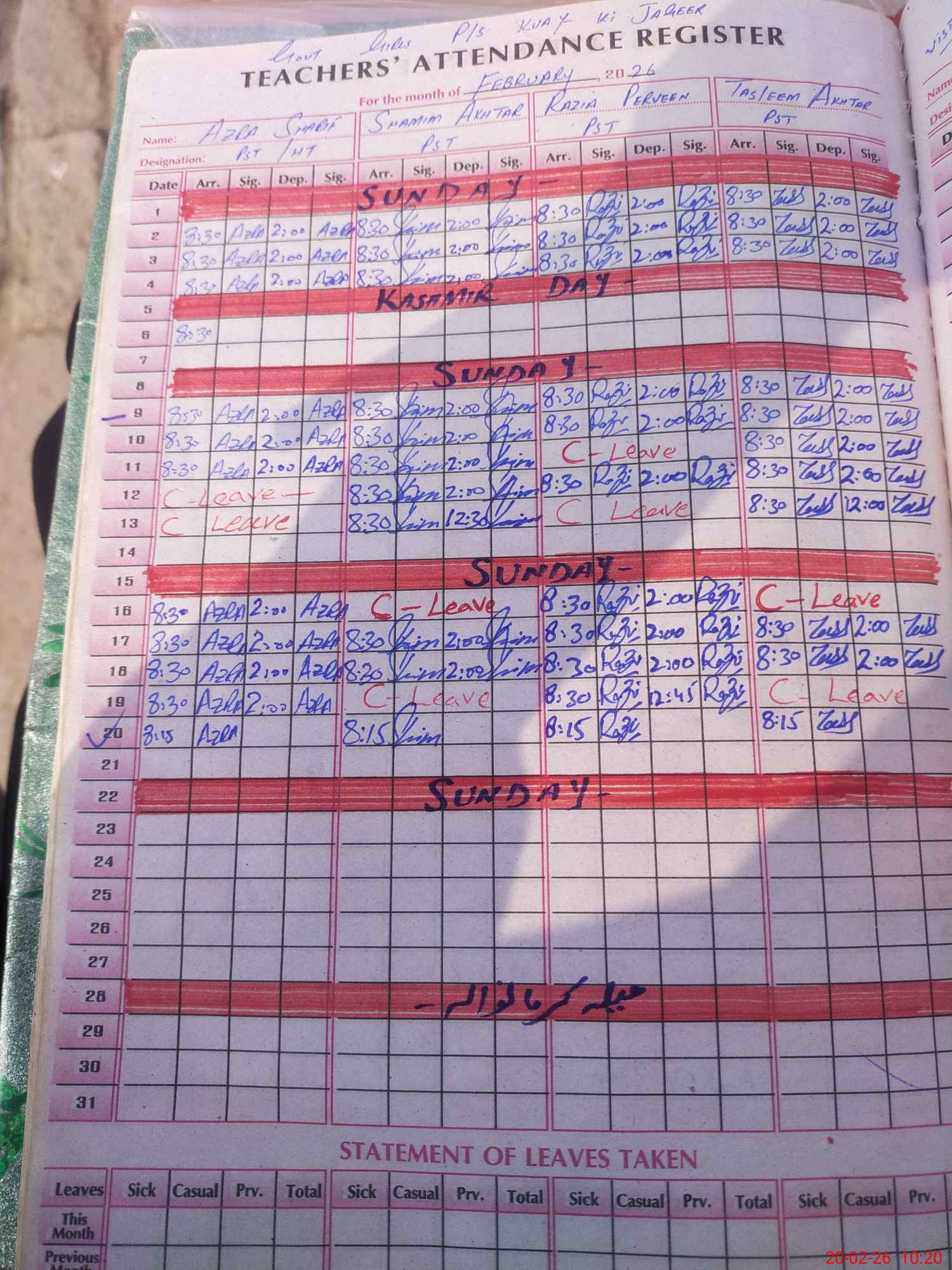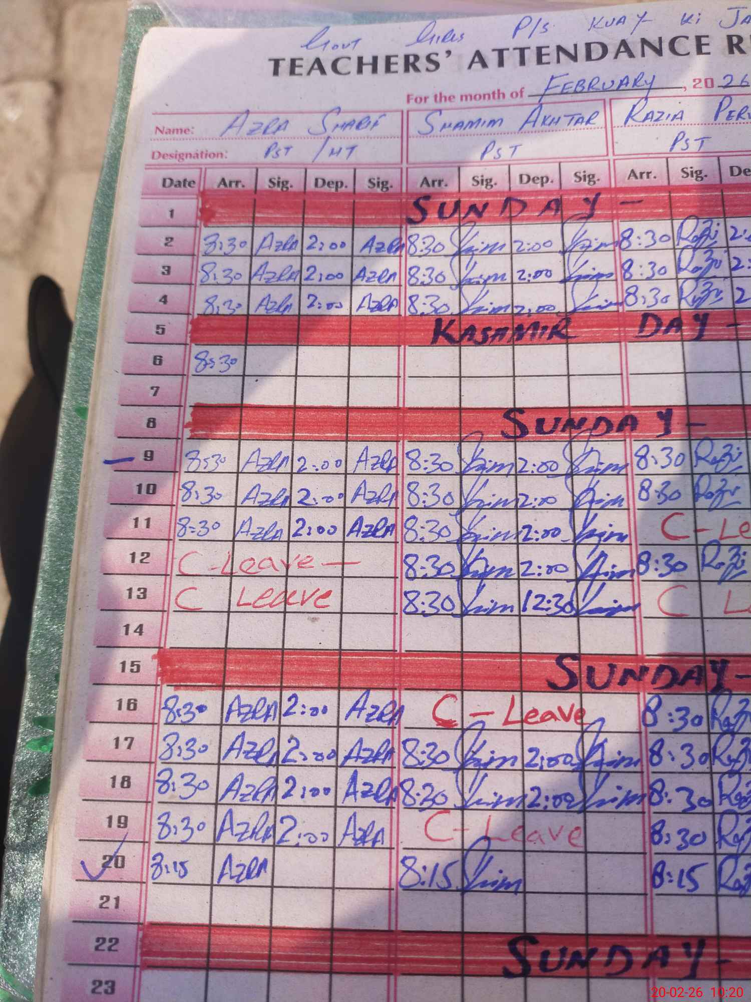 | Name: AZ**** SH**** Designation: (School Headmaster's/Headmistress's) PST Phone/Cell Number: 03**** |