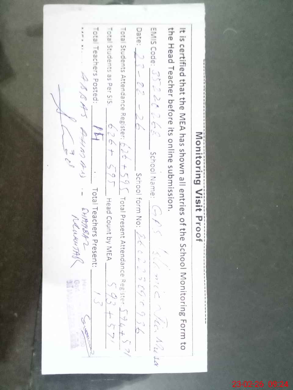 | EMIS Code: 35220268 | Name of School: GPS ISLAMIA JIA MUSA | |||
