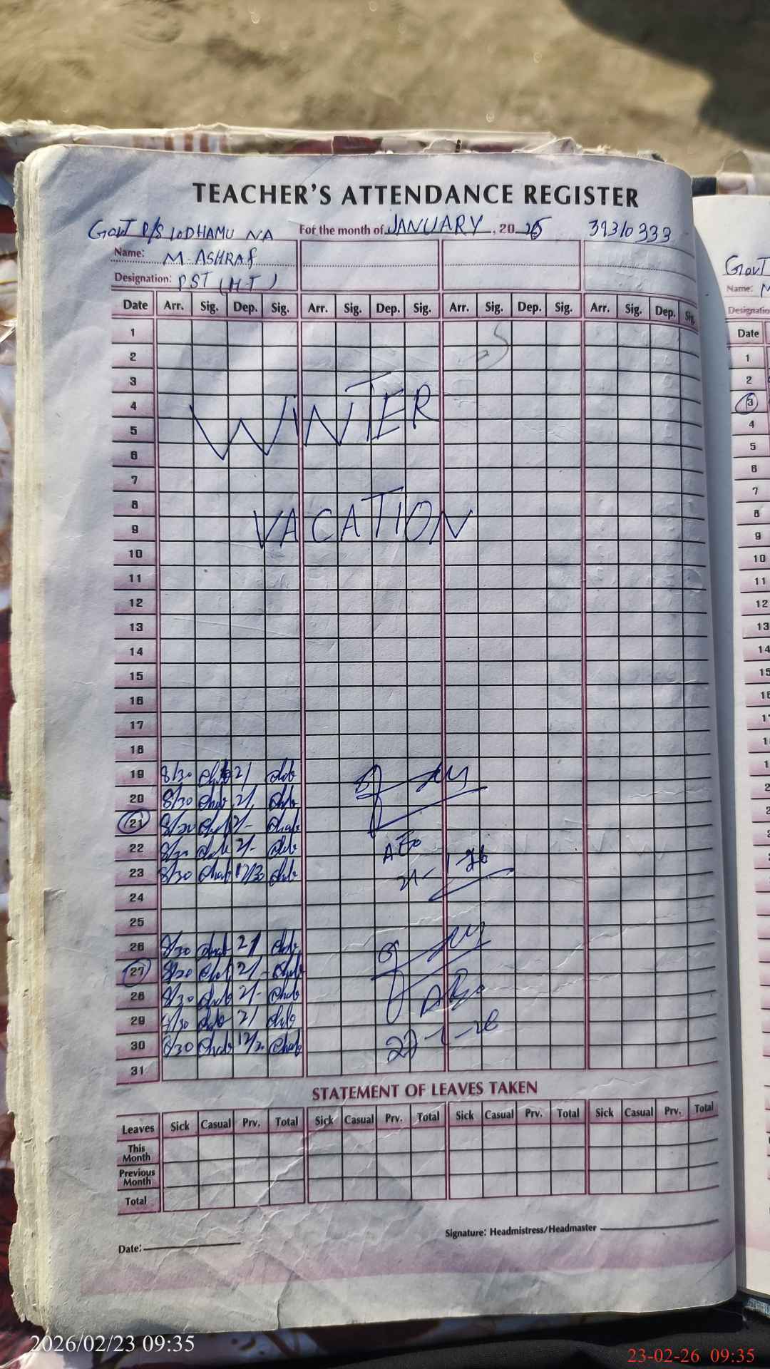 | Name: MU**** AS**** Designation: (School Headmaster's/Headmistress's) PST Phone/Cell Number: 03**** |