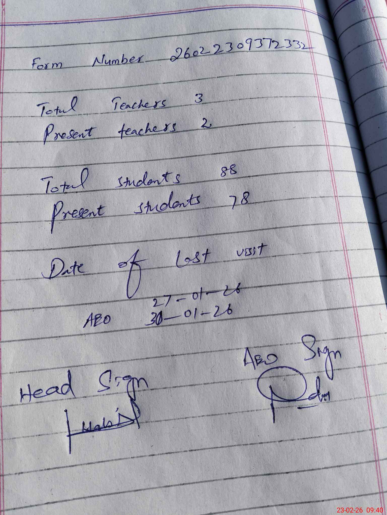 | Certified that this School was Inspected by the Undersigned MEA/DMO Today and the Information Stated Above is as Per Record. | |||||