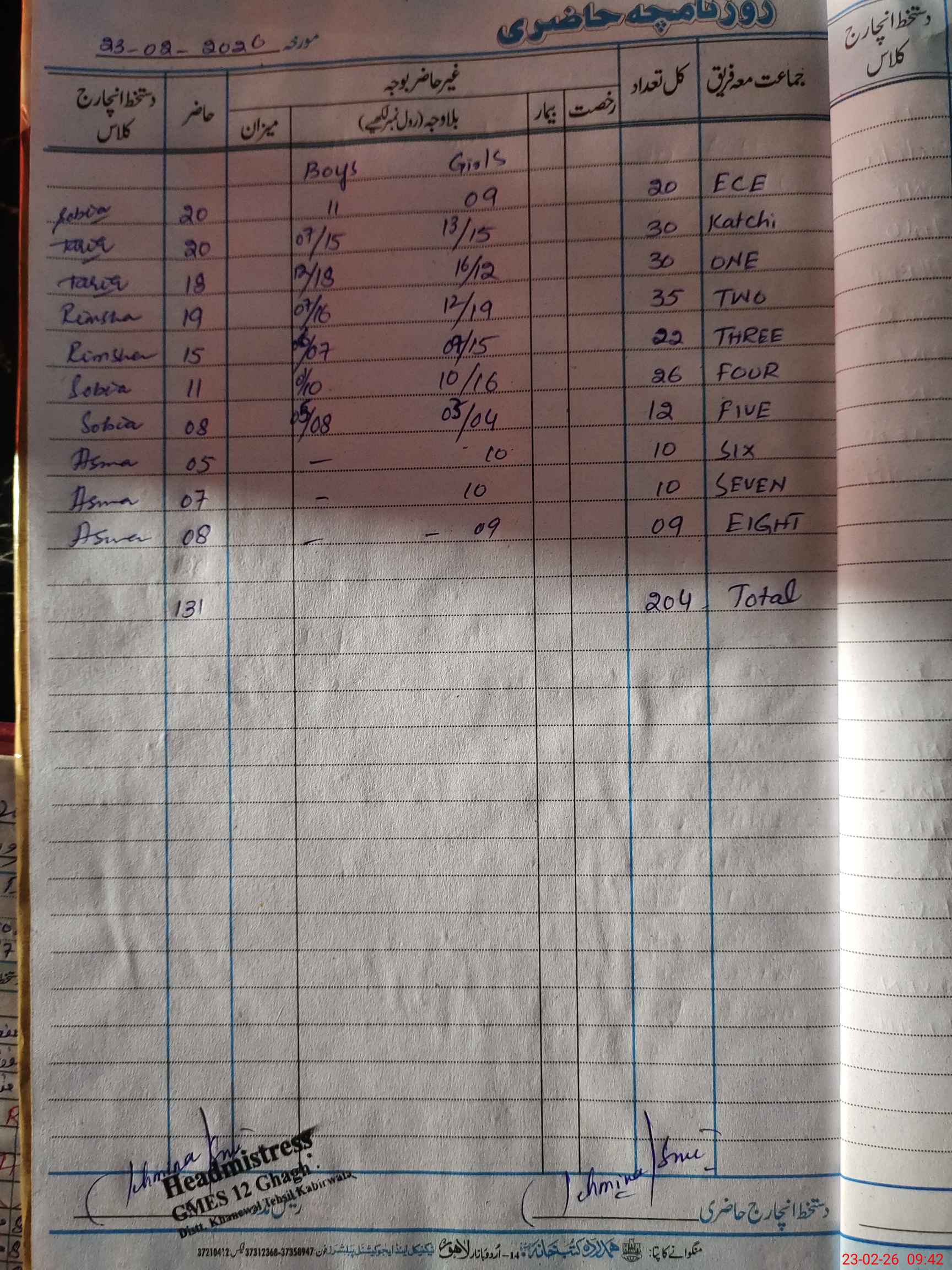 | Attendance Register | Head Teacher | MEA with School | Visit Proof |