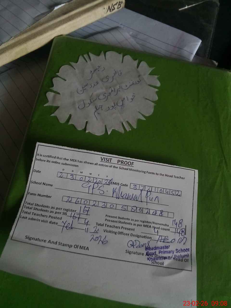 | EMIS Code: 37210452 | Name of School: GPS KHAWAS PUR | |||