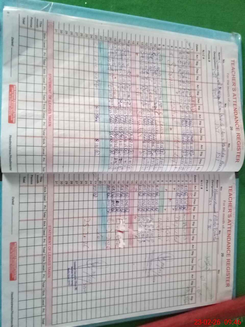 | Name: Su**** La**** Designation: (School Headmaster's/Headmistress's) PST Phone/Cell Number: 03**** |