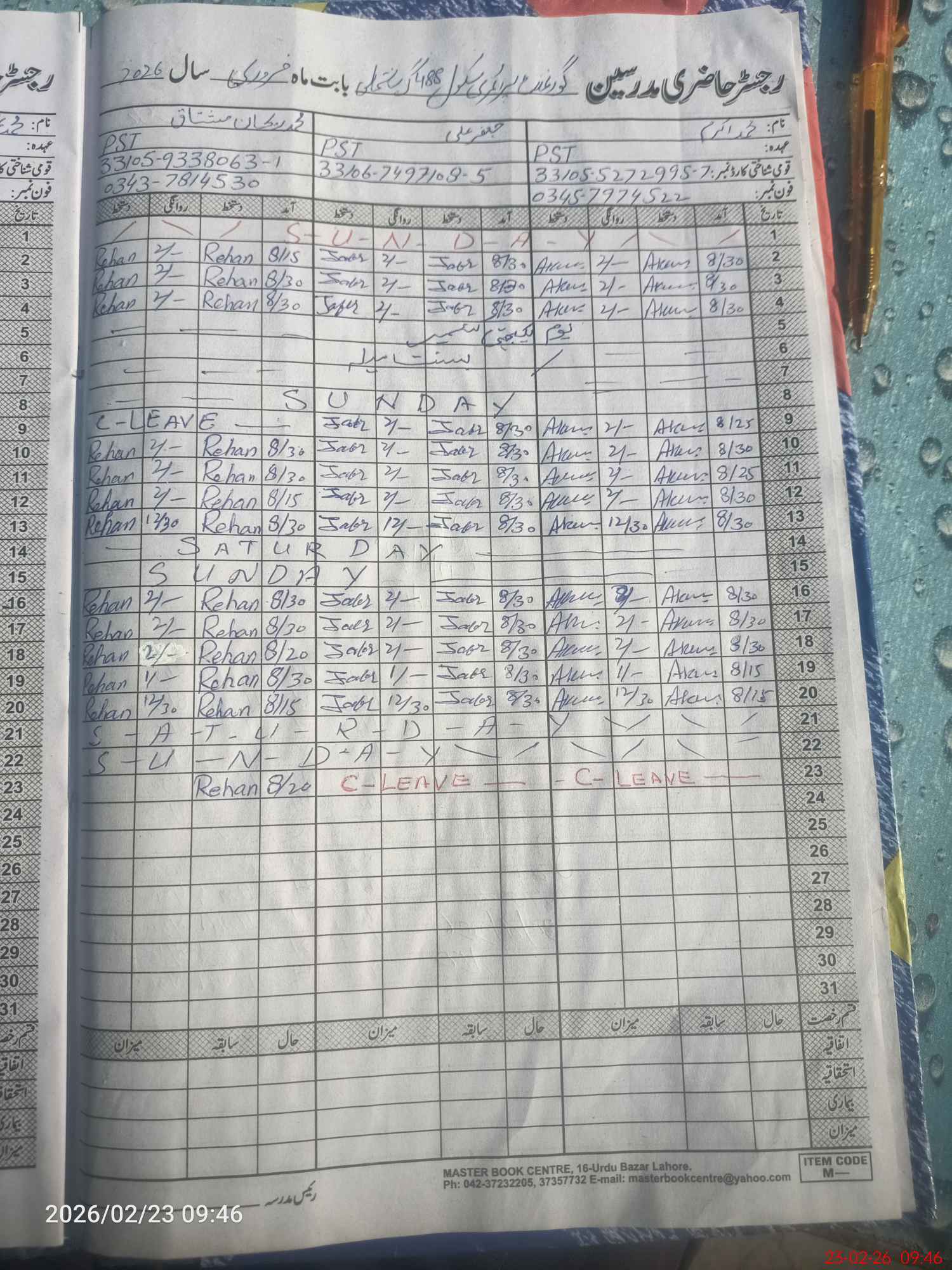 | Name: MU**** AK**** Designation: (School Headmaster's/Headmistress's) PST Phone/Cell Number: 03**** |