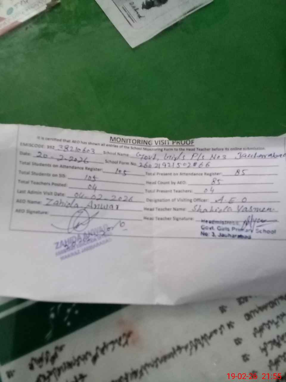 | EMIS Code: 38210603 | Name of School: GGPS NO. 3 JOUHAR ABAD | |||