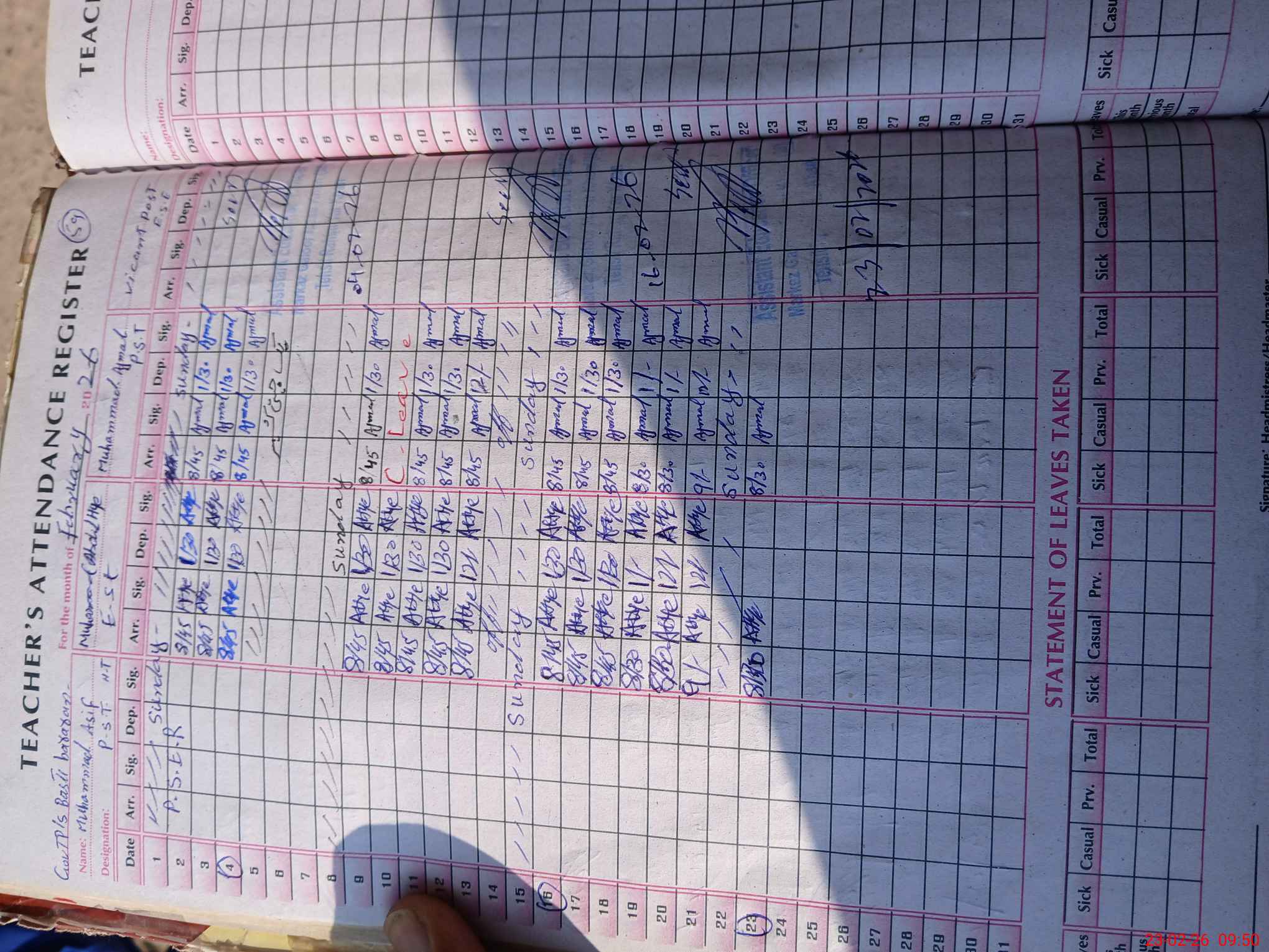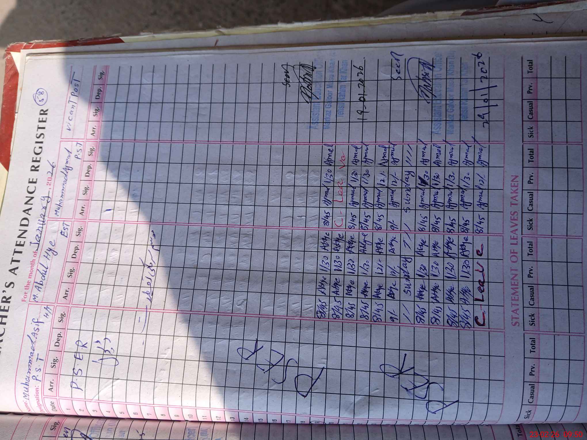 | Name: Mu**** As**** Designation: (School Headmaster's/Headmistress's) P S T Phone/Cell Number: 03**** |