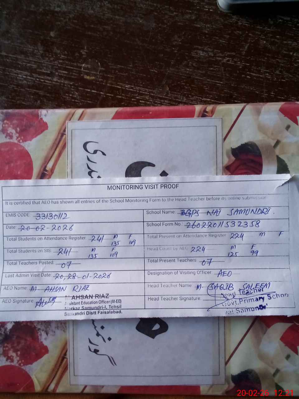 | EMIS Code: 33130112 | Name of School: GPS NAI SAMUNDRI | |||