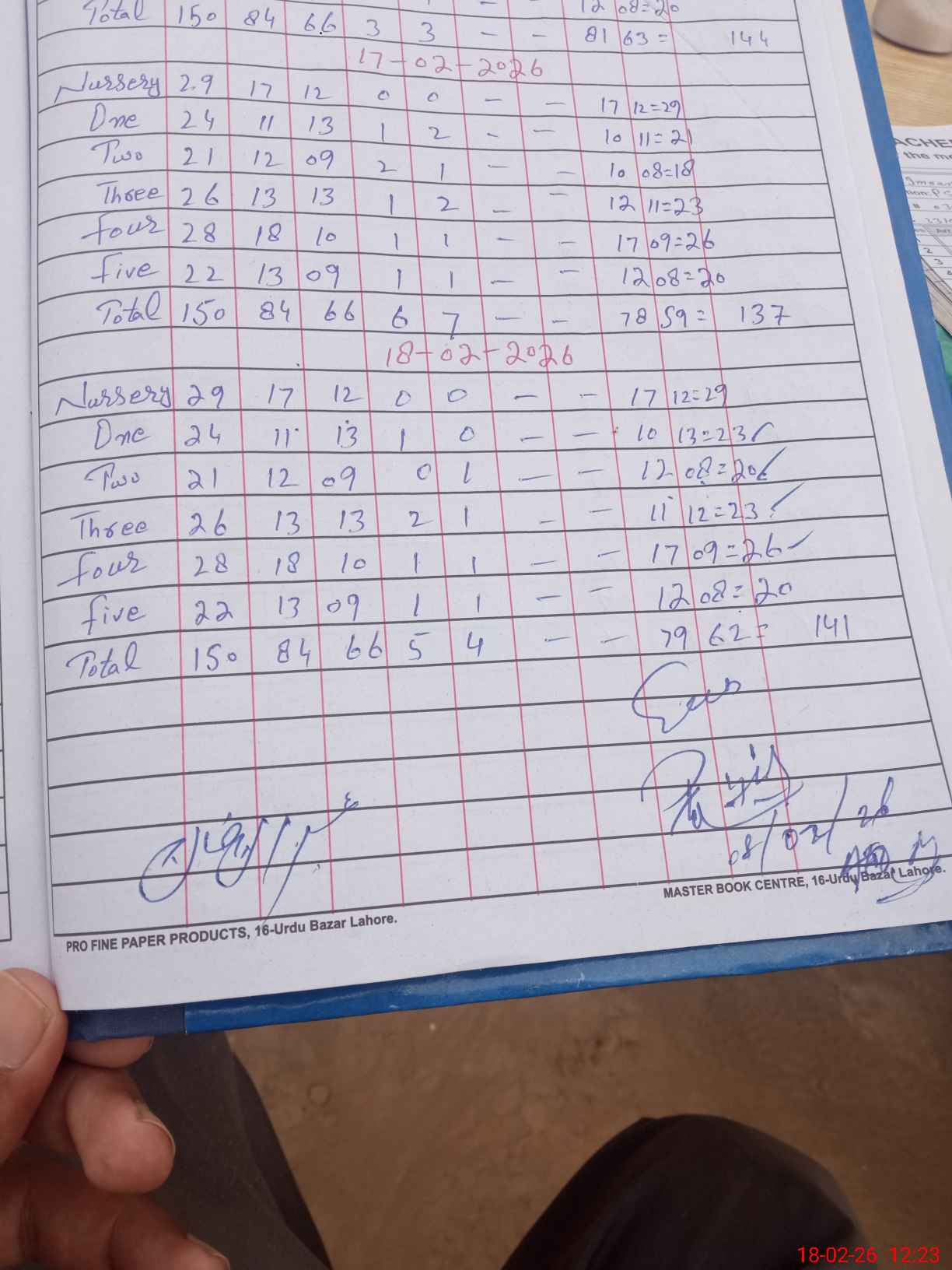 | Total Students Present | 0 | 0 | 23 | 20 | 23 | 26 | 20 | 141 | ||||||||