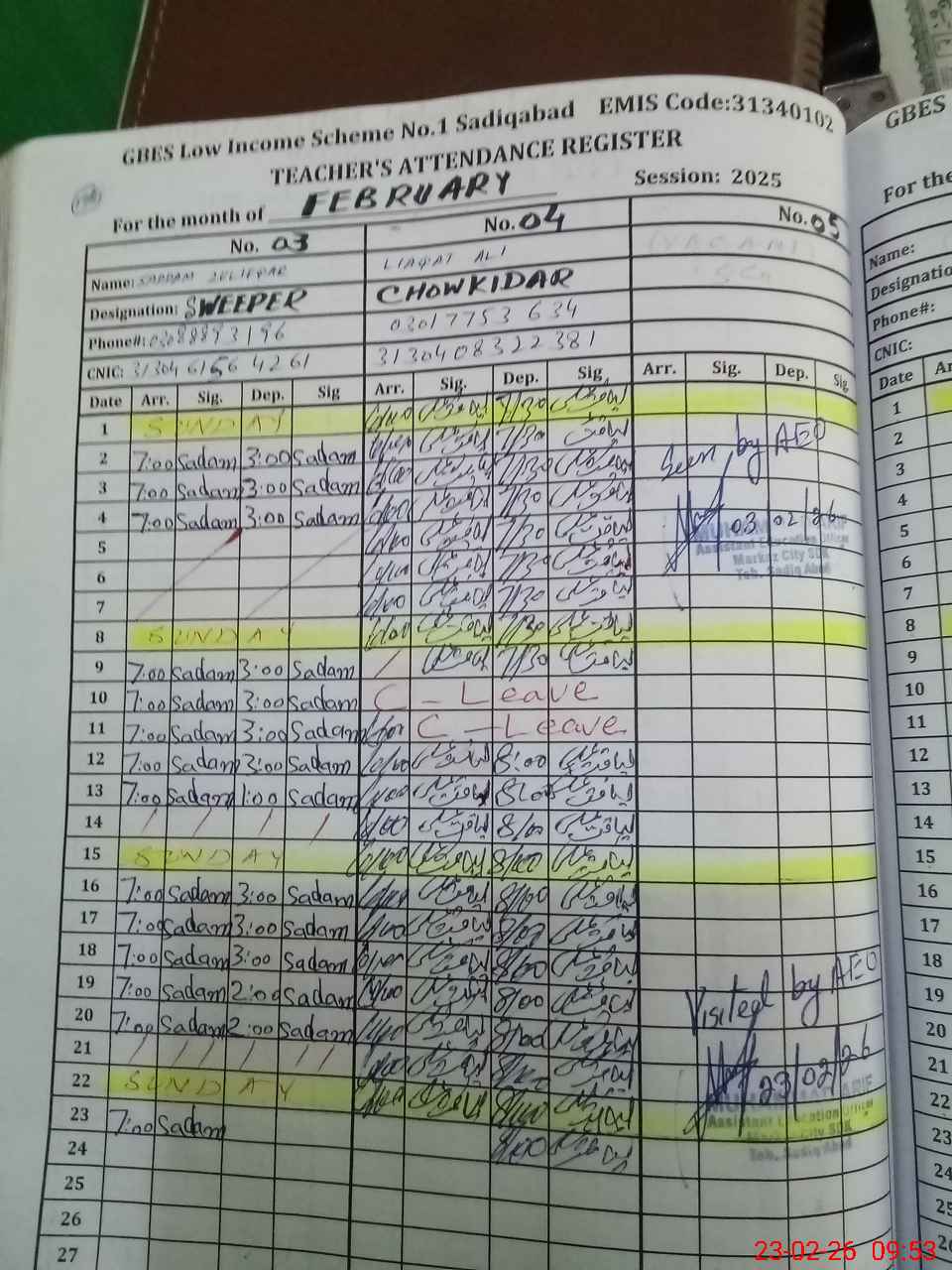 | CNIC | Full Name | Designation | R/C | Absence During Last Calender Month |