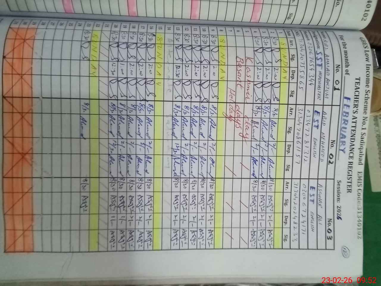 | Name: Ri**** Ah**** Designation: (School Headmaster's/Headmistress's) SST Phone/Cell Number: 03**** |