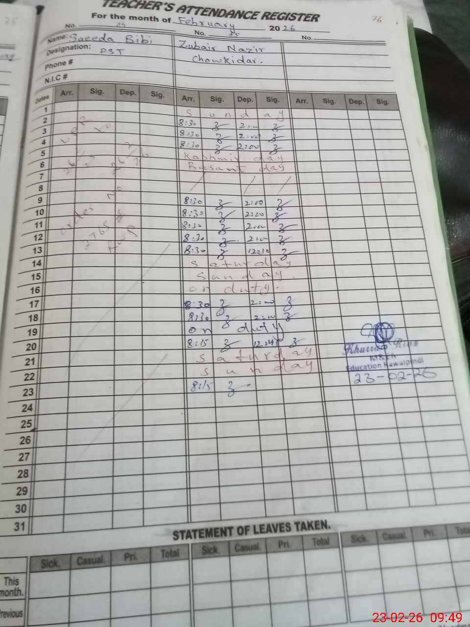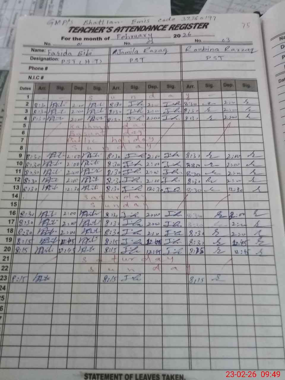 | Name: Fa**** Bi**** Designation: (School Headmaster's/Headmistress's) PST Phone/Cell Number: 03**** |