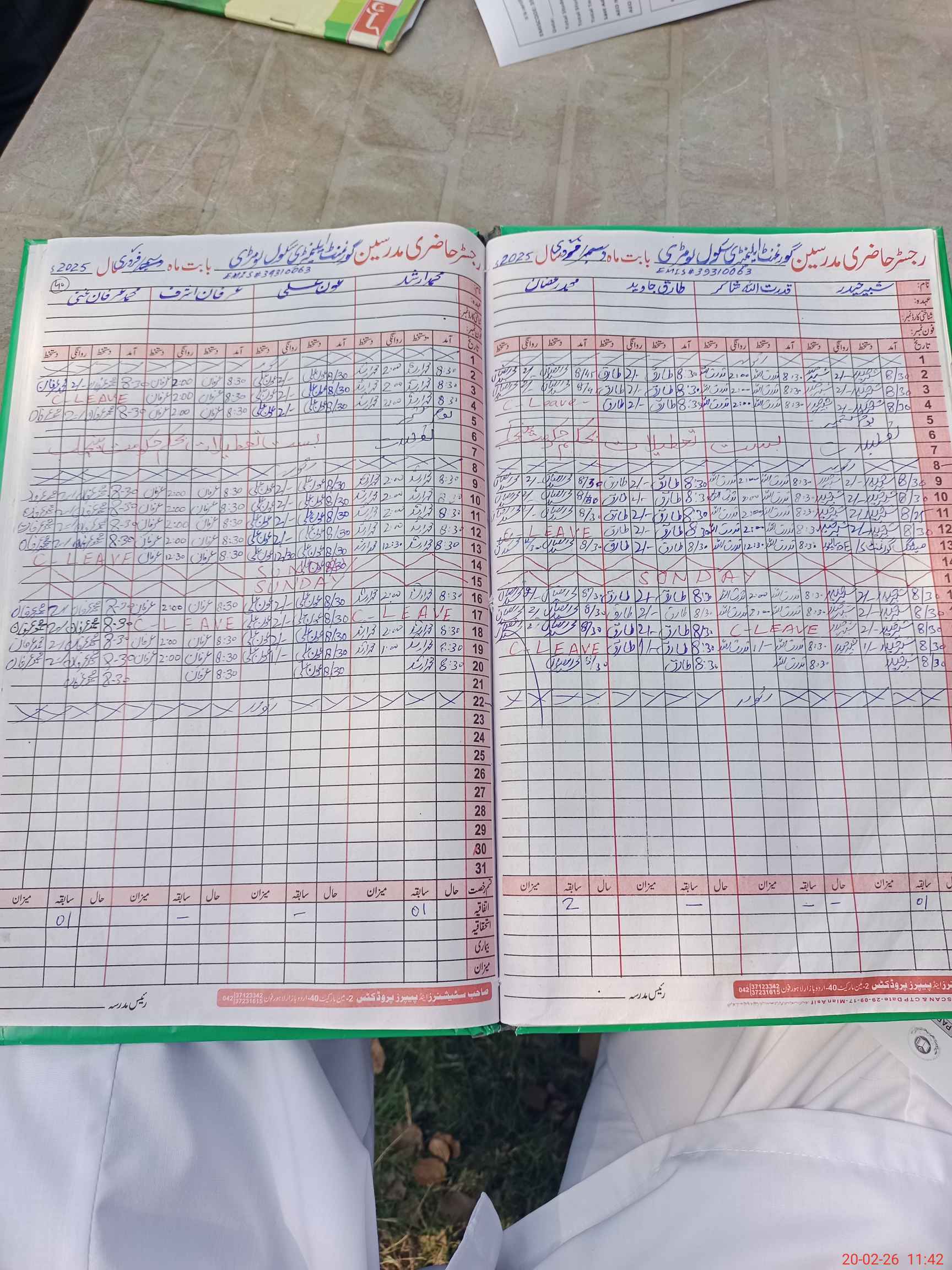 | CNIC | Full Name | Designation | R/C | Absence During Last Calender Month |