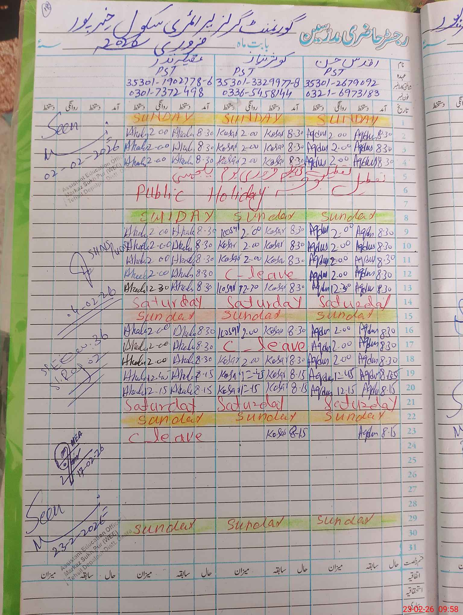 | CNIC | Full Name | Designation | R/C | Absence During Last Calender Month |