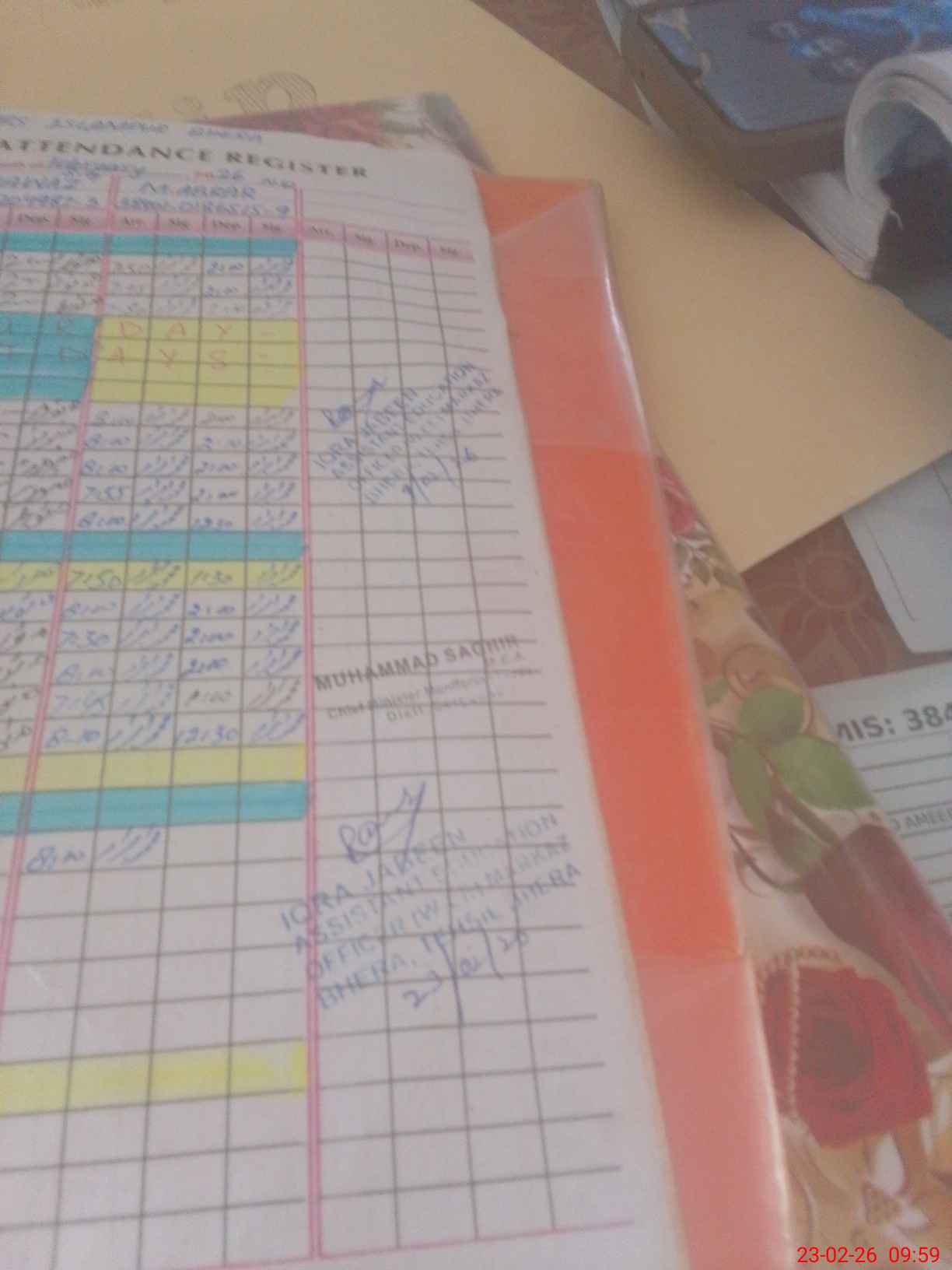 | CNIC | Full Name | Designation | R/C | Absence during last cal. month |