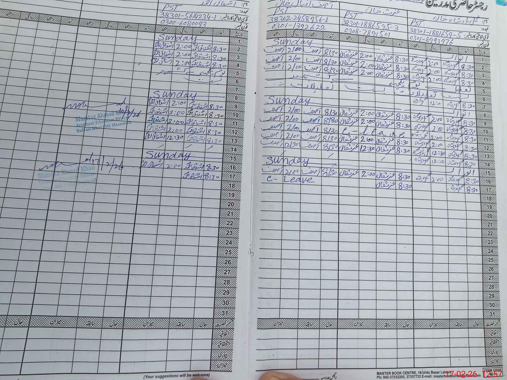 | Remarks (Use Separate Page if Required): Asif Iqbal Khan PST is on casual leave | |||||