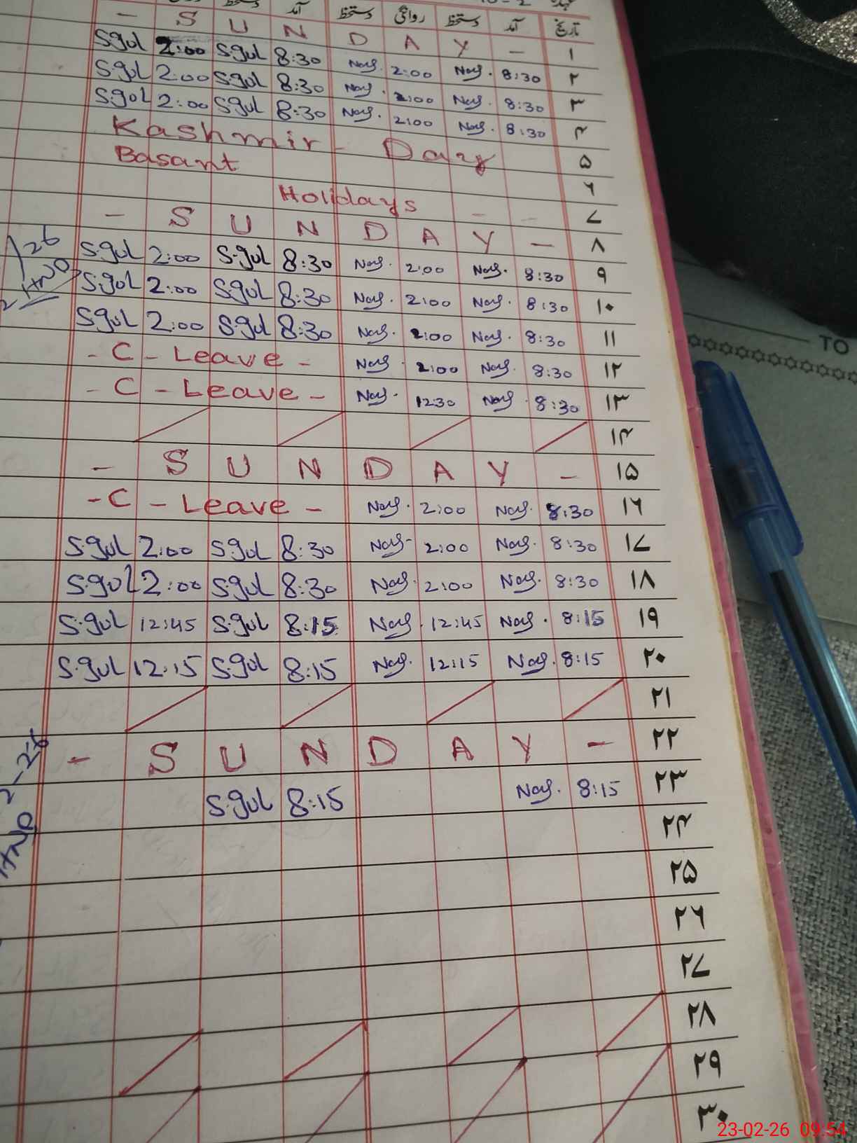 | Leave | Duty | Absent | Maternity | Medical | Ex- Pak |