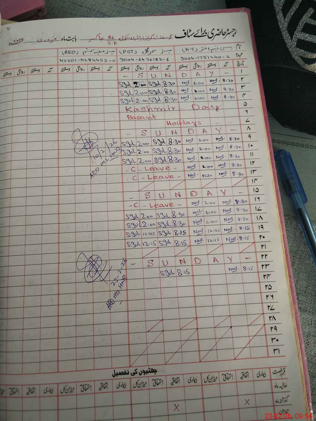 | Name: Na**** Ak**** Designation: (School Headmaster's/Headmistress's) PST Phone/Cell Number: 03**** |