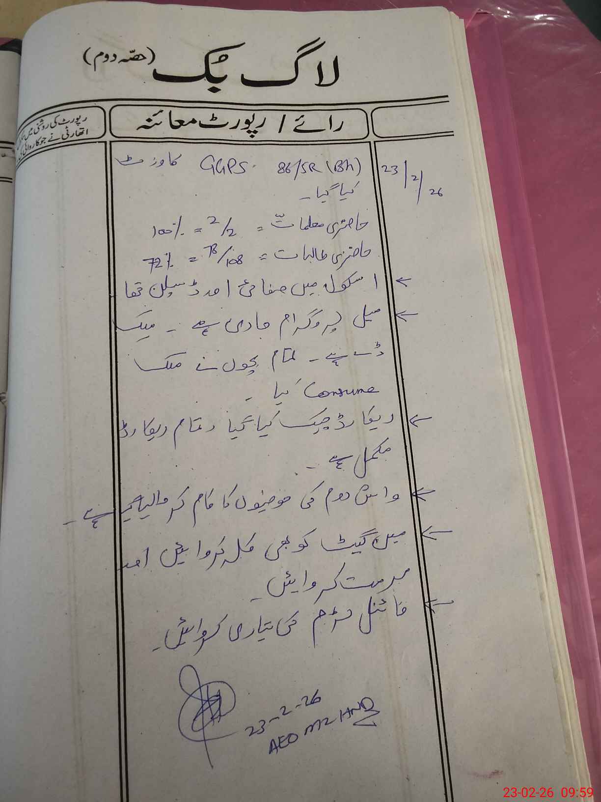 | Certified that this School was Inspected by the Undersigned MEA/DMO Today and the Information Stated Above is as Per Record. | |||||