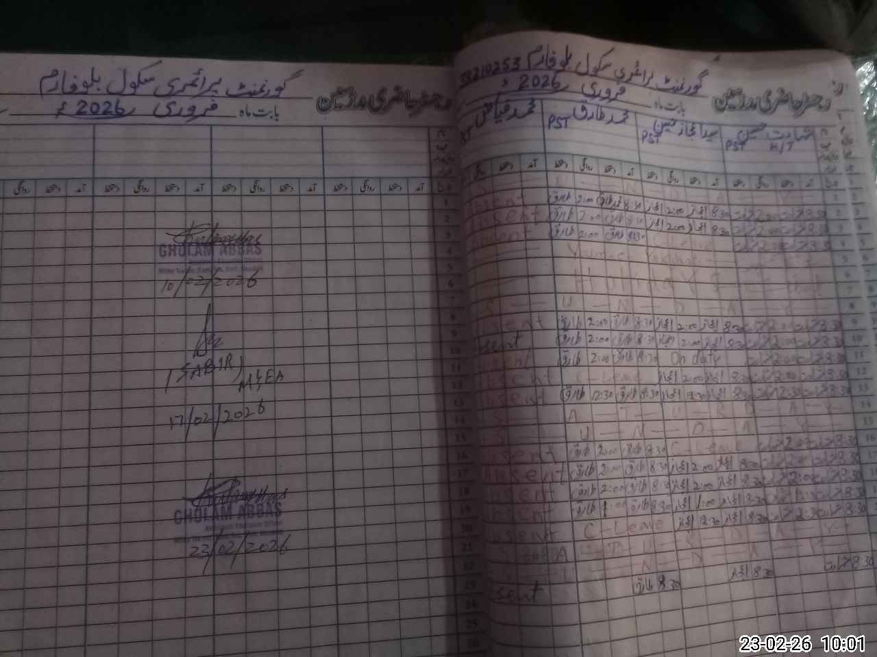 | CNIC | Full Name | Designation | R/C | Absence During Last Calender Month |