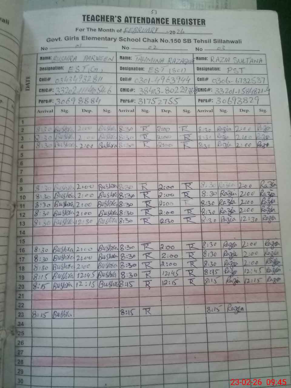 | Name: Bu**** Pe**** Designation: (School Headmaster's/Headmistress's) Eat G Phone/Cell Number: 03**** |